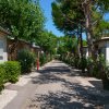 Stradina tra bungalows immersi nel verde, con piante e alberi su entrambi i lati.
