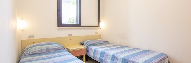 trilocali di circa 35 m² con di veranda esterna con panca, tavolo, sedie e 2 lettini da mare; cucina, stoviglie, frigo, aria condizionata, tv e bagno privato con doccia.